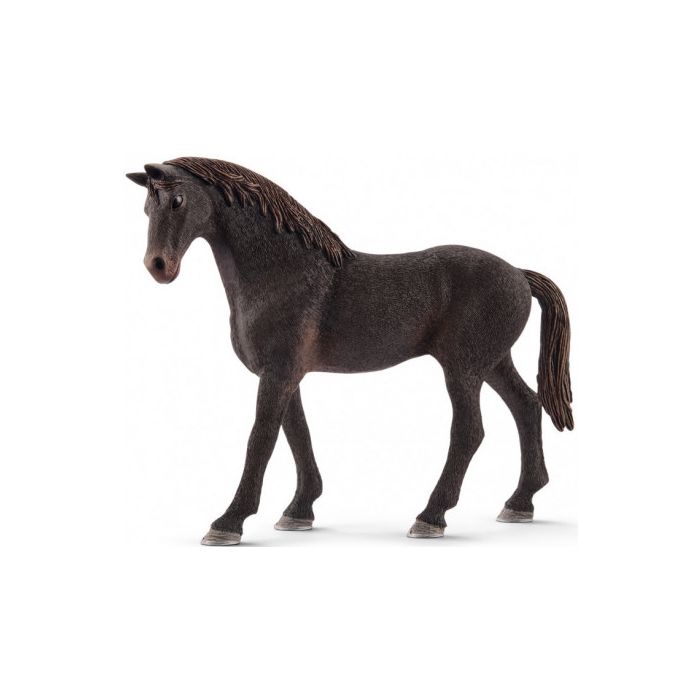 This is a detailed and realistic figure of an English Thoroughbred stallion, a breed known for its speed and endurance. This horse has the elegant and athletic appearance typical of the English Thoroughbred, with a fine build and powerful muscles.