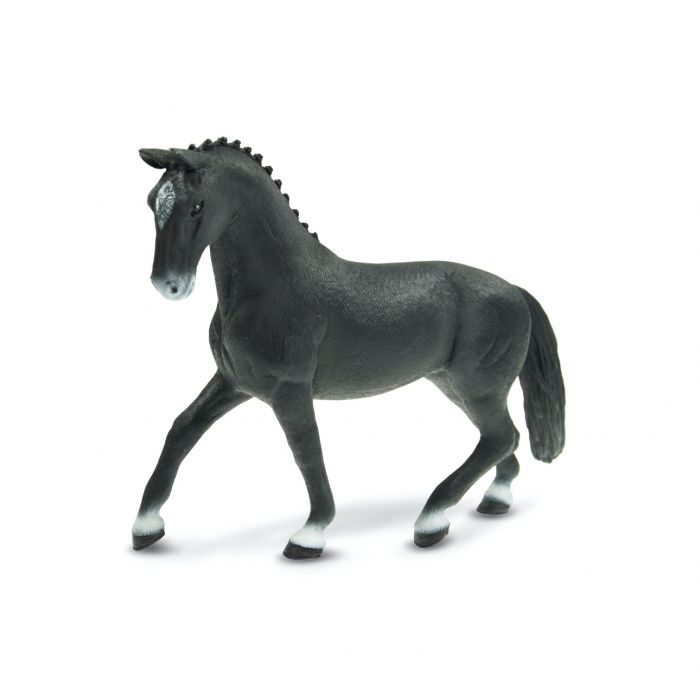 Dit is een gedetailleerd figuur van een Hannoveraanse merrie, een ras dat bekend staat om zijn krachtige en gracieuse bouw. Deze merrie is zorgvuldig handgeschilderd en weerspiegelt de elegante houding van het ras, met een glanzende vacht en een vriendelijke uitstraling.Â
