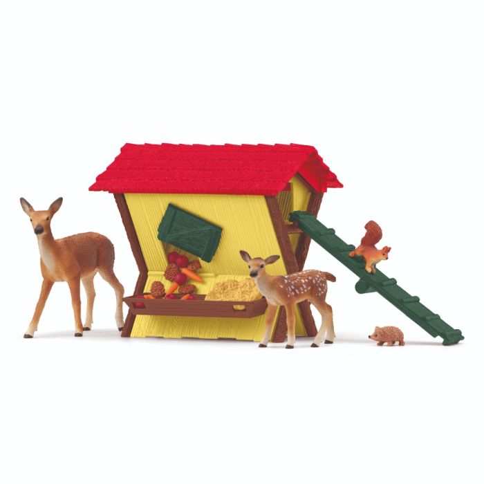 | Content | 1x feeding crib with removable roof, 1x seesaw, 1x feeding trough, 1x feeding rack, 1x hay rack, 6x feeding bowls, 1x red deer doe, 1x red deer calf, 1x hedgehog, 1x squirrel, 6x apples, 8x carrots |