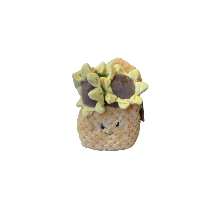 The Take Me Home Plant Plush Flower Basket. A soft and cheerful plush flower basket with yellow flowers. Perfect as a decoration, cuddly friend or unique gift!